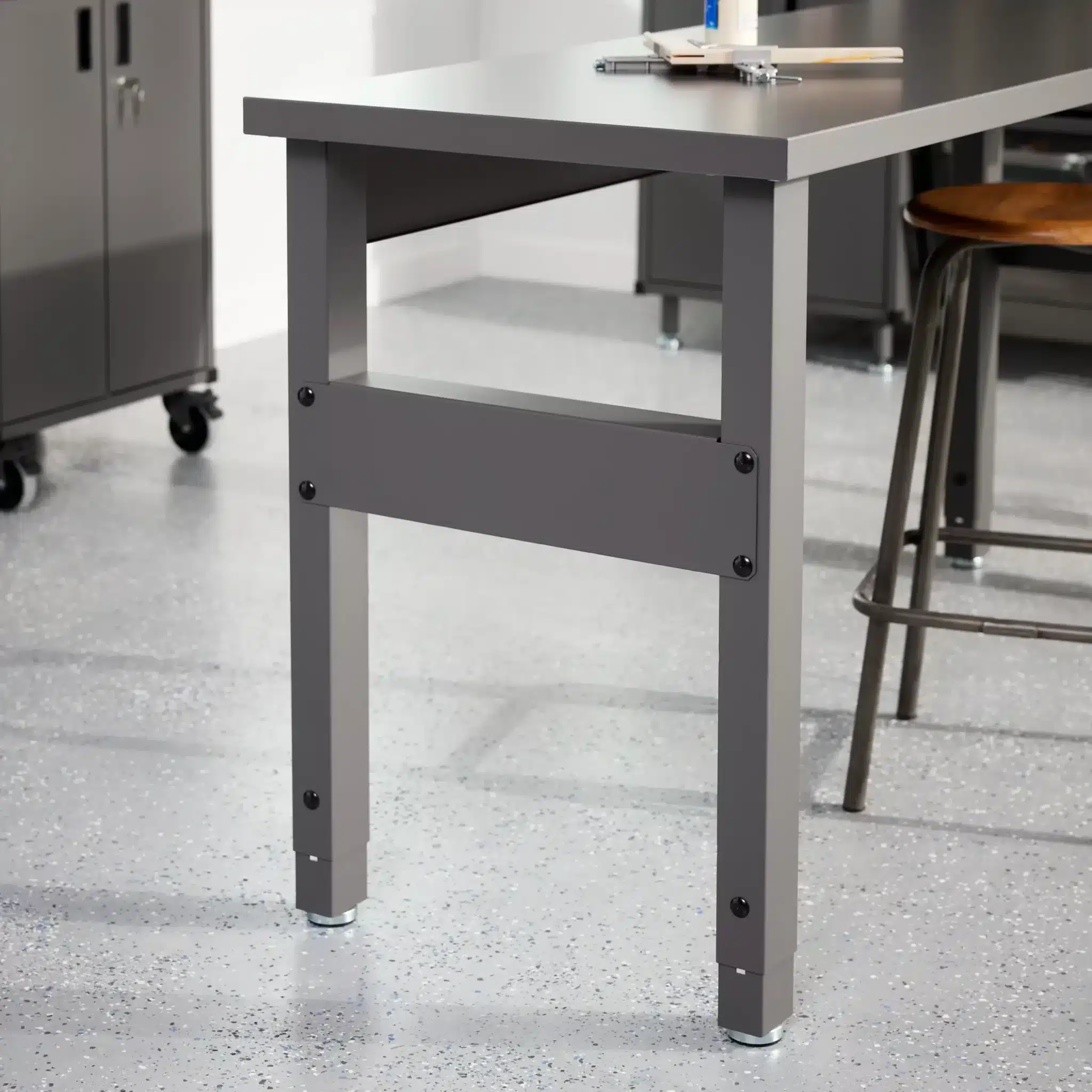 Vytvořte si ideální pracovní prostor pomocí nohou pracovního stolu, které jsou určeny pro volně stojící pracovní stoly. Tyto nohy s nastavitelnou výškou v rozpětí 834-1077 mm nabízejí všestrannost pro různé projekty. Přiložené nastavitelné nohy zajišťují stabilitu i na nerovných podlahách. Vylepšete svůj pracovní prostor montáží těchto nohou pod desku pracovního stolu (SKU): 4700120